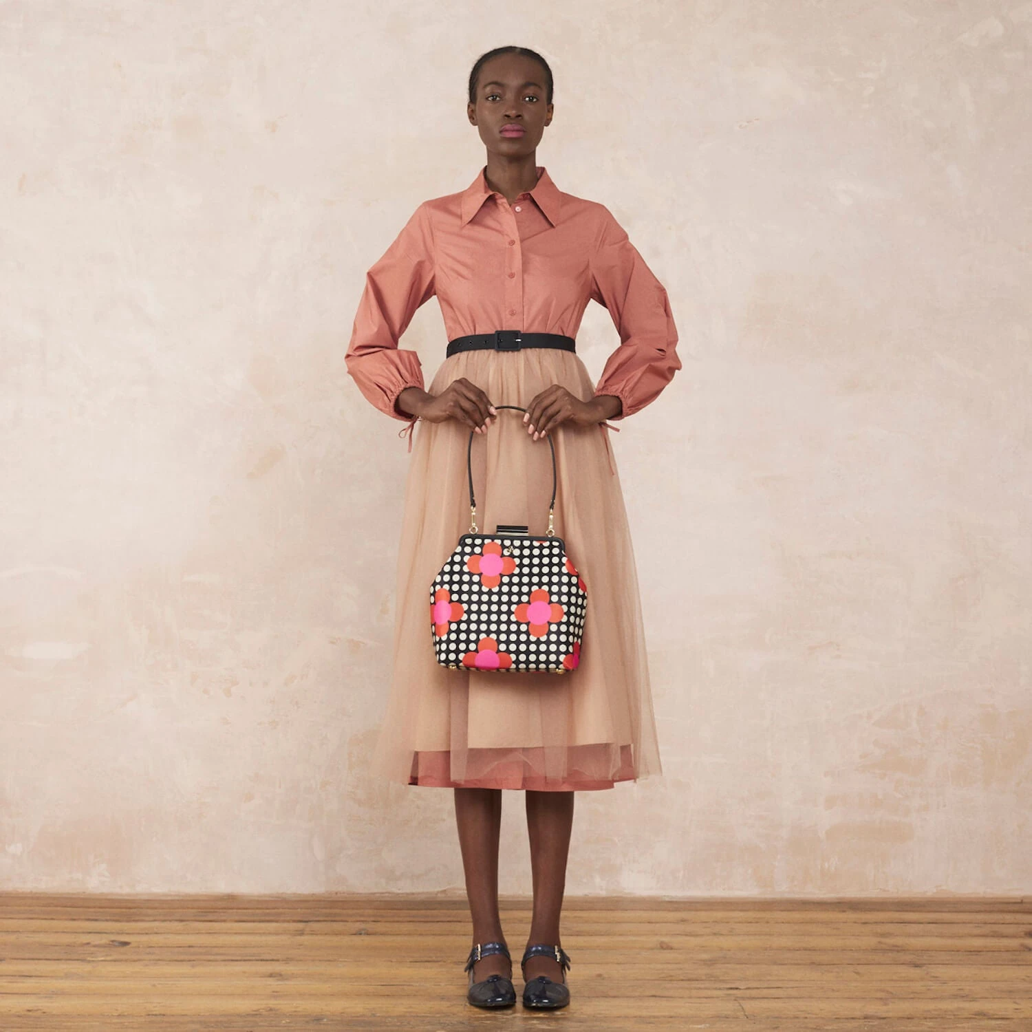 - Black leather frame with black flower closure