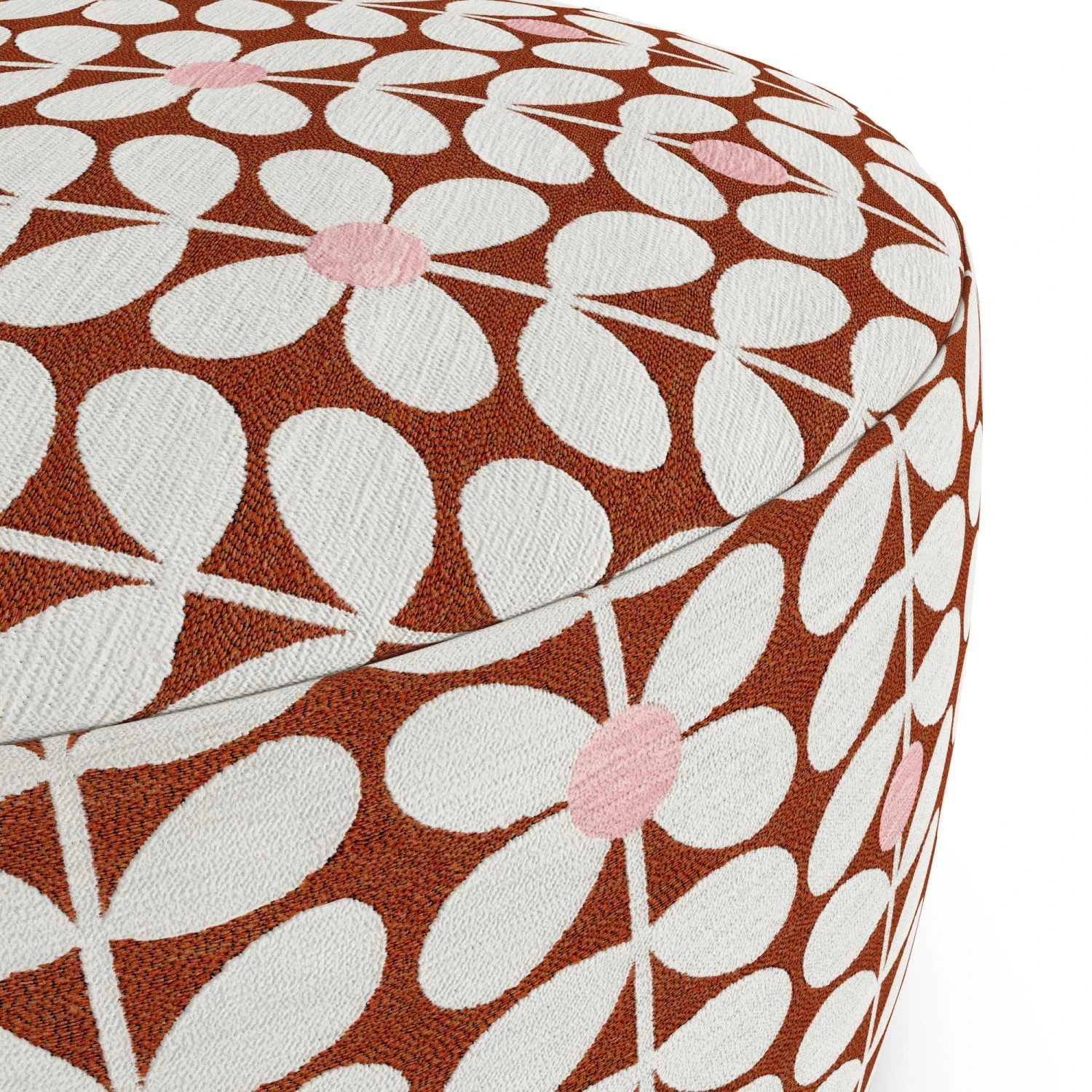 The Orla Kiely Conway fabric pattern large footstool is a contemporary feature piece available in various combinations of Orla Kiely’s iconic pattern and plain fabrics, giving any room the perfect bold statement. Handmade to order in the UK, all Orla Kiely pieces include a manufacturer warranty of 12 months, plus a 10 year construction guarantee against defective workmanship.