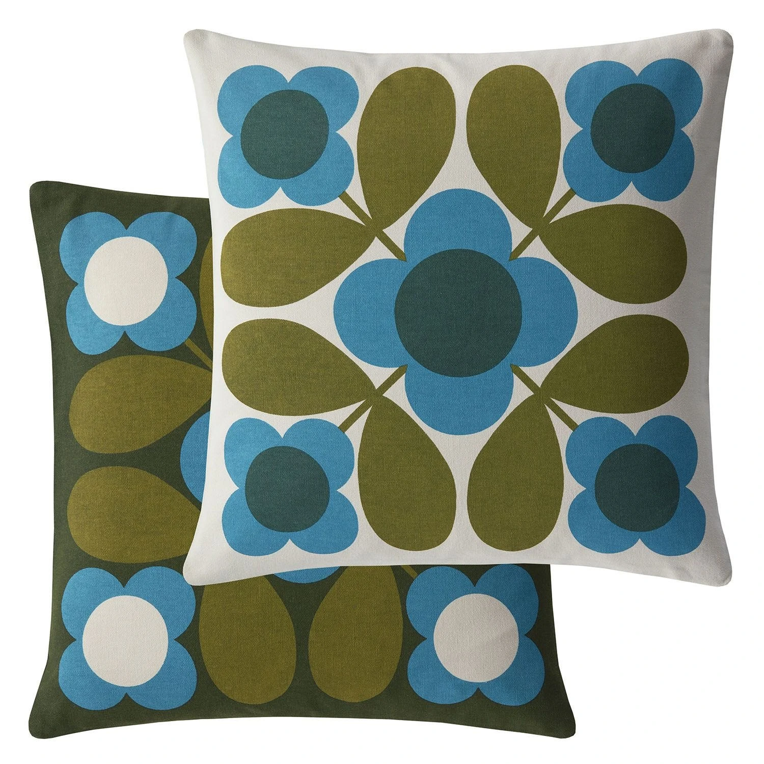 The perfect finishing touch for your armchair, sofa or bed, the Flower Tile cushion from Orla Kiely will bring a welcome pop of colour to your room. This 70’s inspired reversible cushion is presented in a rich moss, jade green and kingfisher blue palette, which radiates retro charm. Style with the Stem Sprig bedding range for maximum impact.