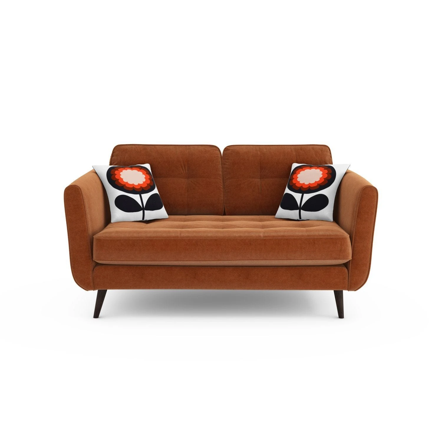 Featuring a perfect combination of contemporary design and retro style, the Orla Kiely Ivy small velvet 2 seater sofa boasts a rounded design with sloped arms. The high density, foam filled seat and back cushions have been finished with an elegant square quilted surface design and perfectly piped seams. Upholstered in fabrics personally approved by Orla Kiely herself, every piece is packed with personality and features the vibrant colours and iconic graphic prints that are instantly recognised with the Orla Kiely name. Handmade to order in the UK, all Orla Kiely sofas include a manufacturer warranty of 12 months plus a 10 year frame and construction guarantee.*