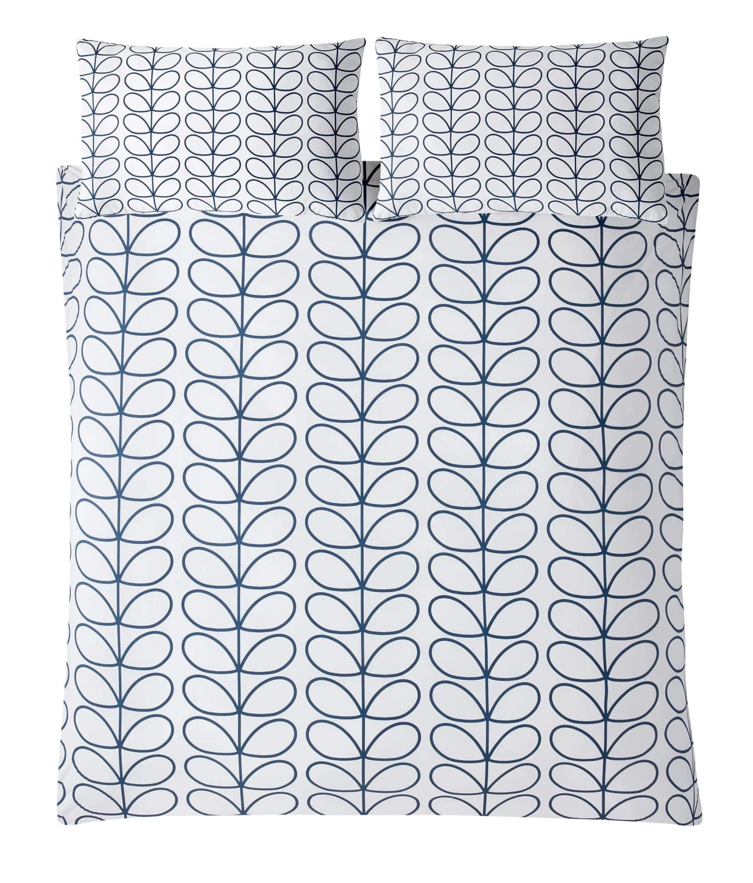 Freshen up your bedroom with the iconic Linear Stem duvet cover from Orla Kiely. In a bold whale blue tone, the timeless design sits on a warm off-white background for a contemporary look that will brighten up any home. Style with the coordinating cushions for maximum impact. This design comes beautifully packaged in a re-usable cotton bag in the Linear Stem print. Includes a king size duvet cover, pillowcases are not included but are available to purchase separately.