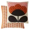 Orla Kiely’s signature stem print marries beautifully with another quintessential Orla motif, the four-petal flower, to add a touch of retro charm to your home. Reminding us of a wild rambling rose, this 100% cotton reversible cushion, in a warm dandelion and grey palette features a co-ordinating, four-petal flower reverse.