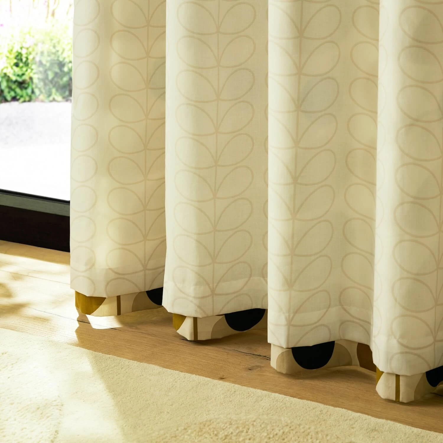 Make a bold, retro statement in your home with our eye-catching Stem Bloom curtains. Printed onto 100% cotton, the Stem Bloom design is a combination of our iconic stem motif and signature four petal flower. Coloured in warm, earth tones and a bold black, these eyelet curtains are perfect for adding a cool, mid-century inspired touch to your home. The printed lining features our iconic stem design in neutral cream shades.